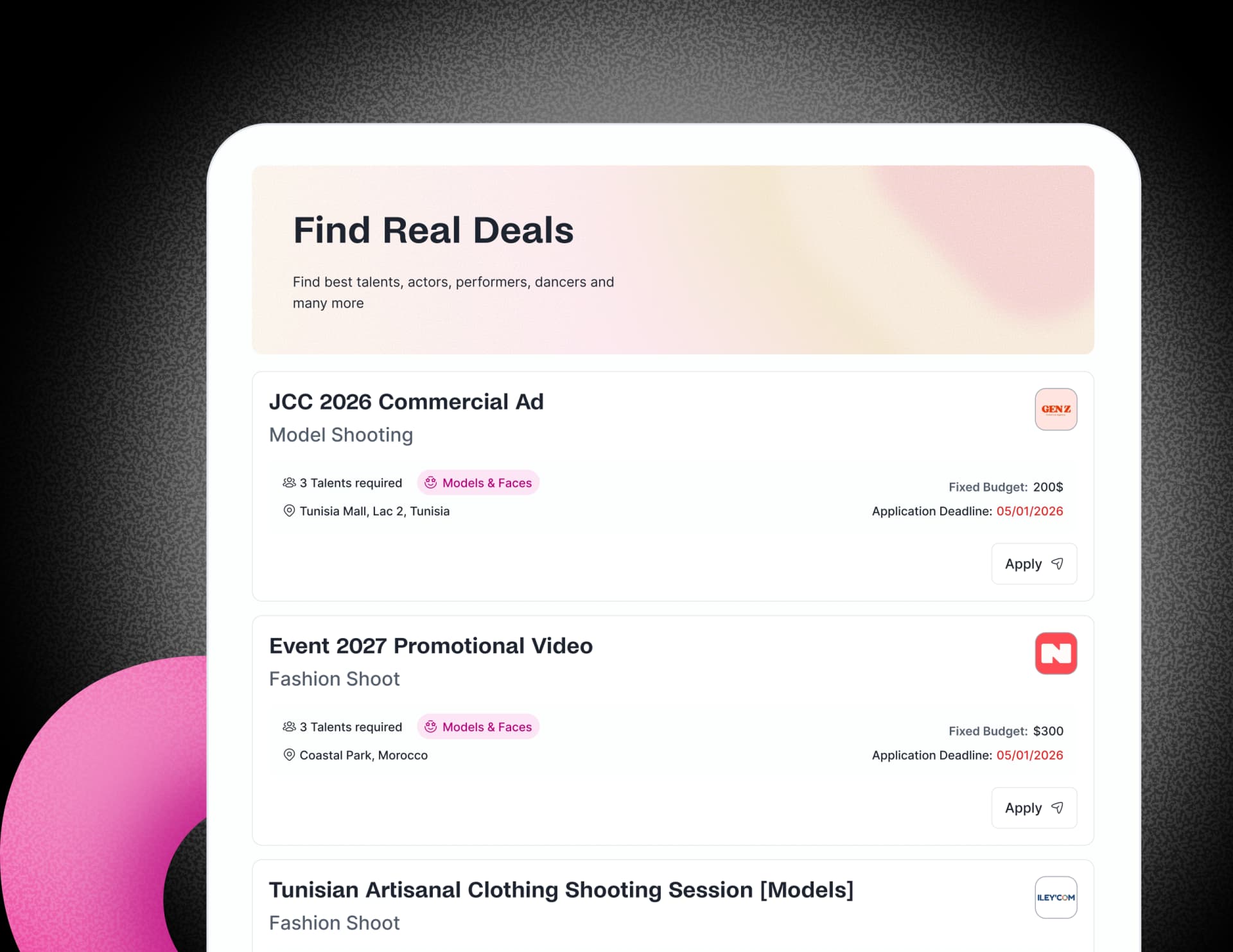 Create one profile and get matched with productions and brands looking for real people — fast, fair, and verified.